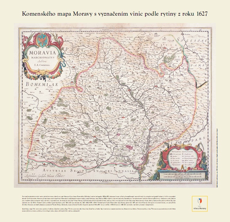 Komenského mapa Moravy s vyznačením vinic podle rytiny z roku 1627. Rozměry mapy 620 x 600 mm. …