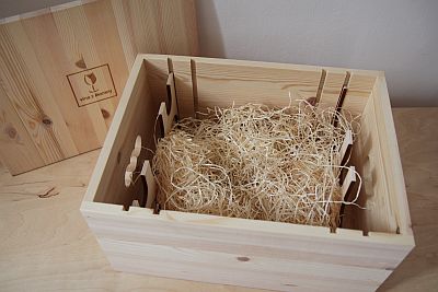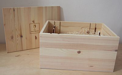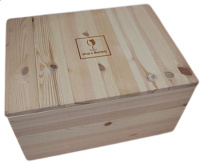 Exkluzivní dřevěná bedýnka na 6 lahví, odnímatelné víko s logem Vína z Moravy, praktické úchyty po stranách. Rozměry 38,5 x 28 x 21,5 cm.