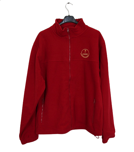 Fleecová celopropínací mikina klasického střihu se zlatou výšivkou loga "Salon vín České republiky". Spodní okraj na stahovací šňůrky, na předním díle 2 kapsy na zip. Rukávy staženy do manžety s pruženkou. Složení: 100% polyester. Antipeelingová úprava na vnější straně vesty. Praní v pračce na 40 °C. Velikost XXL.