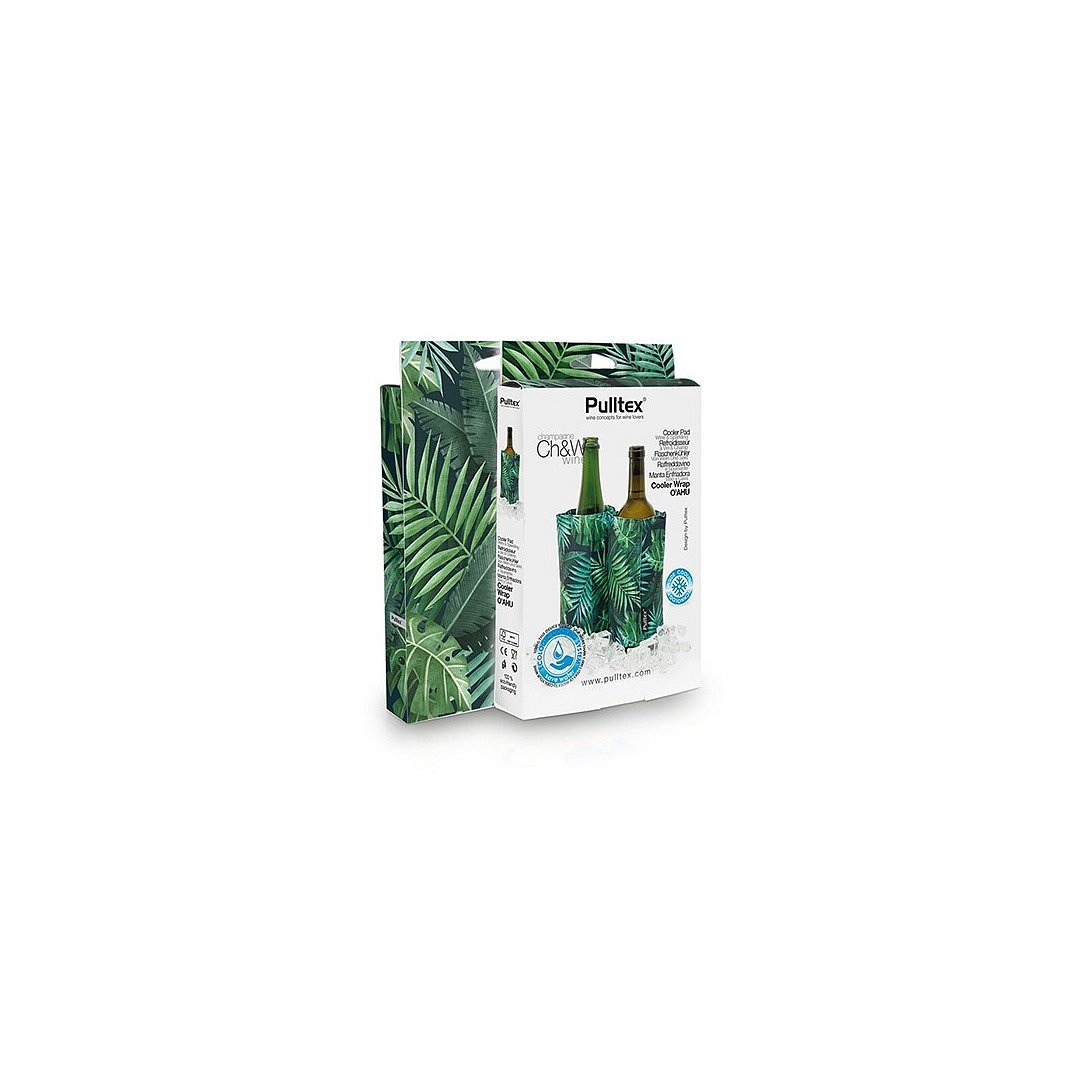 Gelový chladicí obal na víno ve veselém havajském designu. Je oboustranný, každá strana určena pro jiný typ láhve se zapínáním na suchý zip. Ideální pomocník pro uchování vašeho vína či sektu v optimální teplotě. Před použitím nutno nachladit v mrazicím boxu. K dispozici ve třech variantách: modrá s růžovými květy, modrobílá a zelená. Balení: v papírové krabičce.