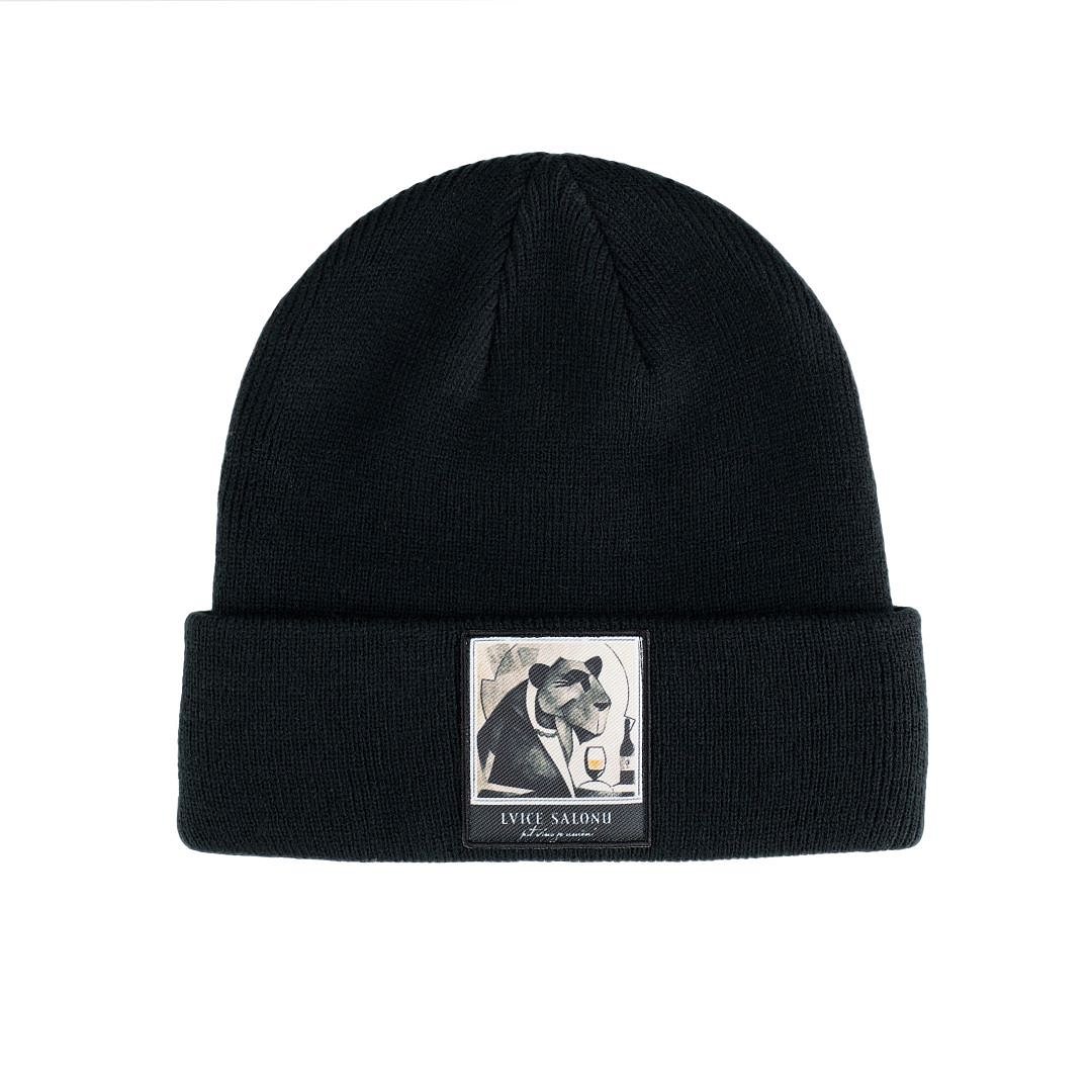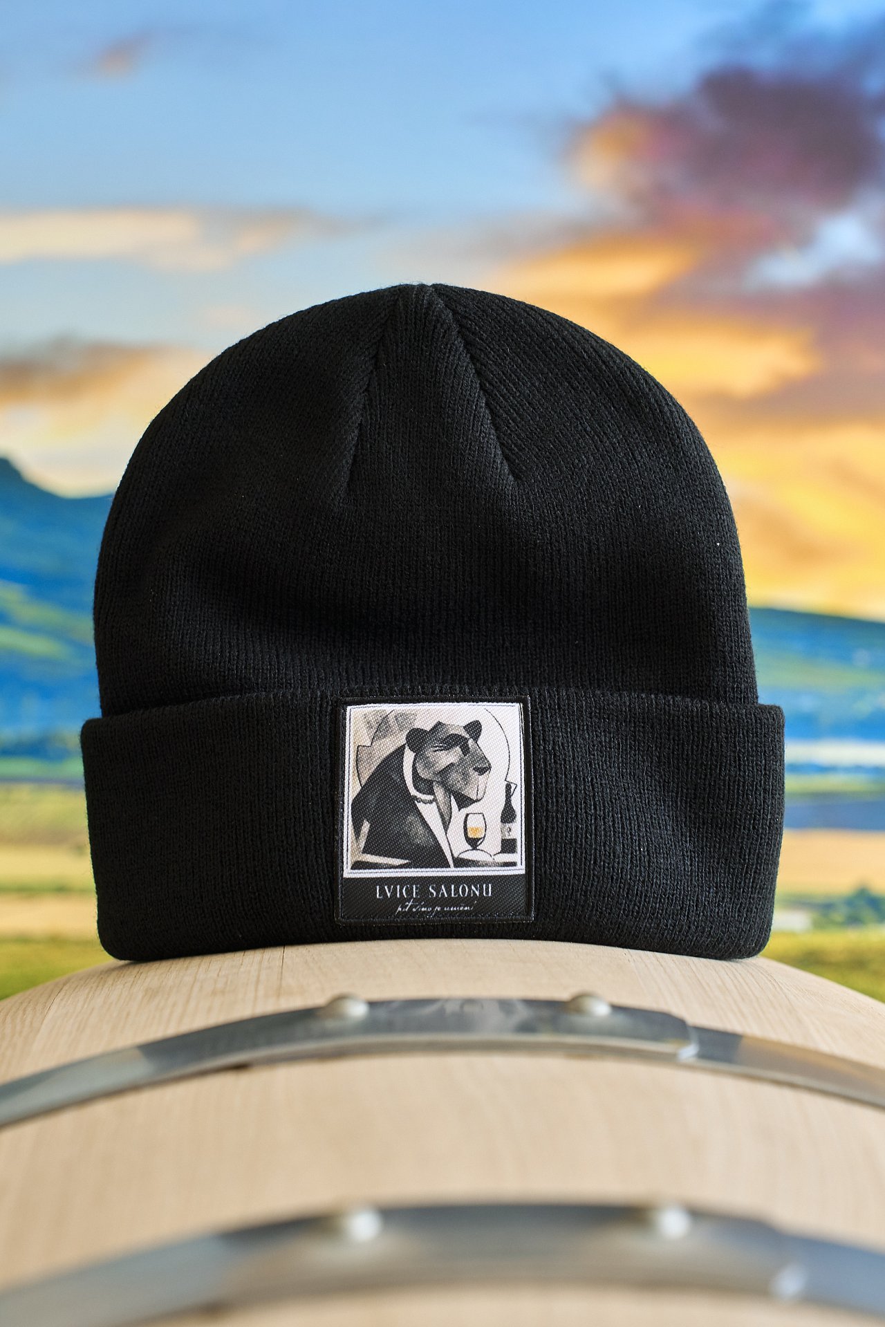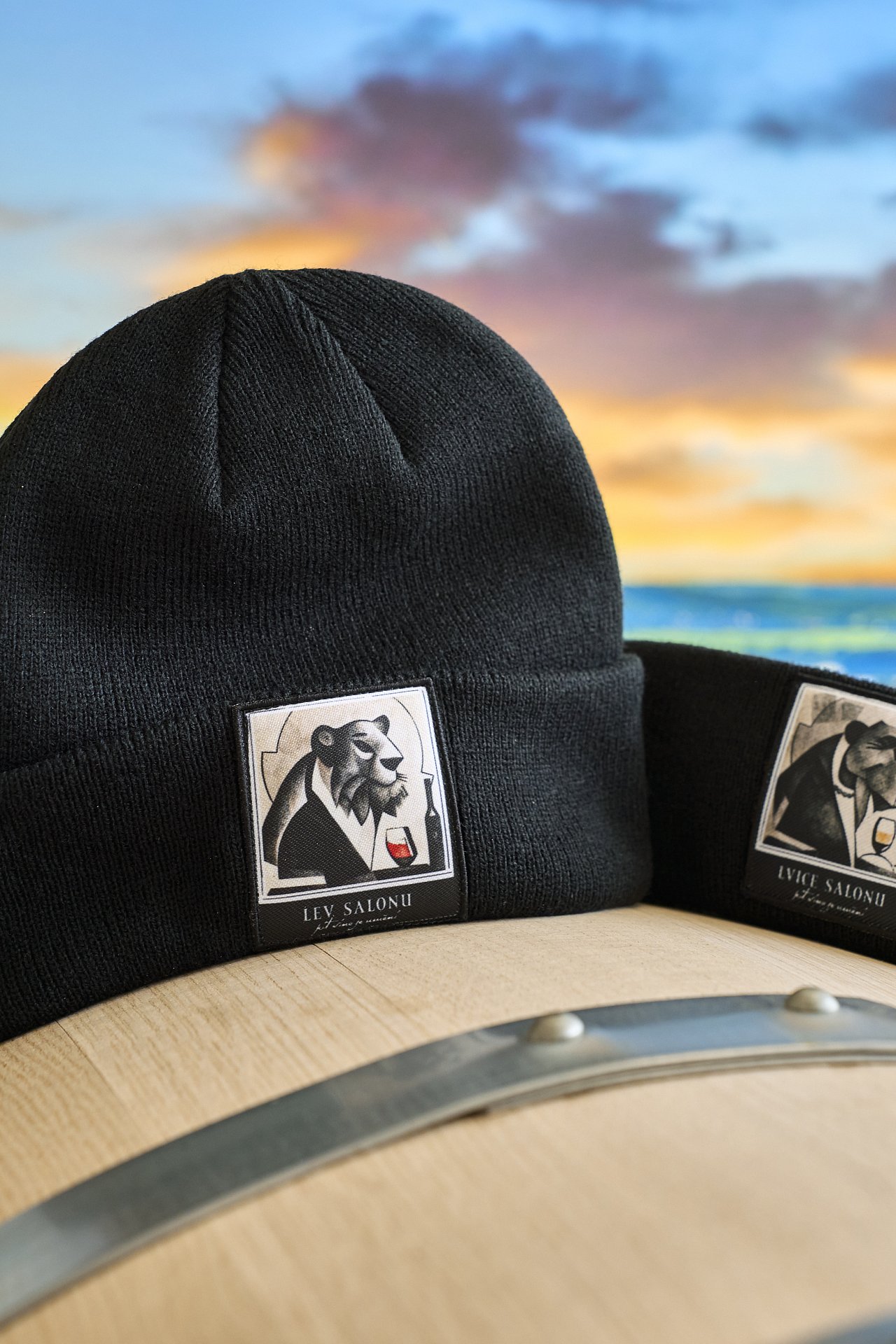 Podrobnější popis: Lehká a funkční čepice z dvouvrstvého pružného úpletu s lemem o šířce 7 cm a nášivkou Lev Salonu / Lvice Salonu.