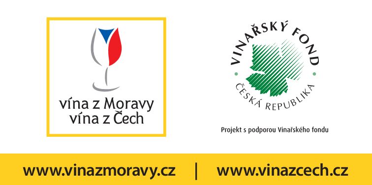 Vinylový banner s logy Vína z Moravy, Vína z Čech a Vinařského fondu a textem "Projekt s podporou…