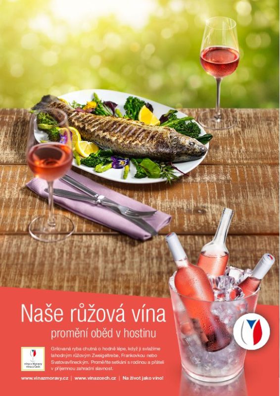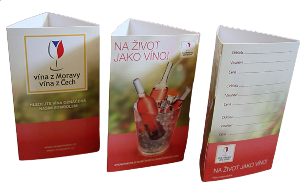 Papírový skládací stojánek na stůl s místem pro uvedení nabídky růžových vín s motivem letošní…