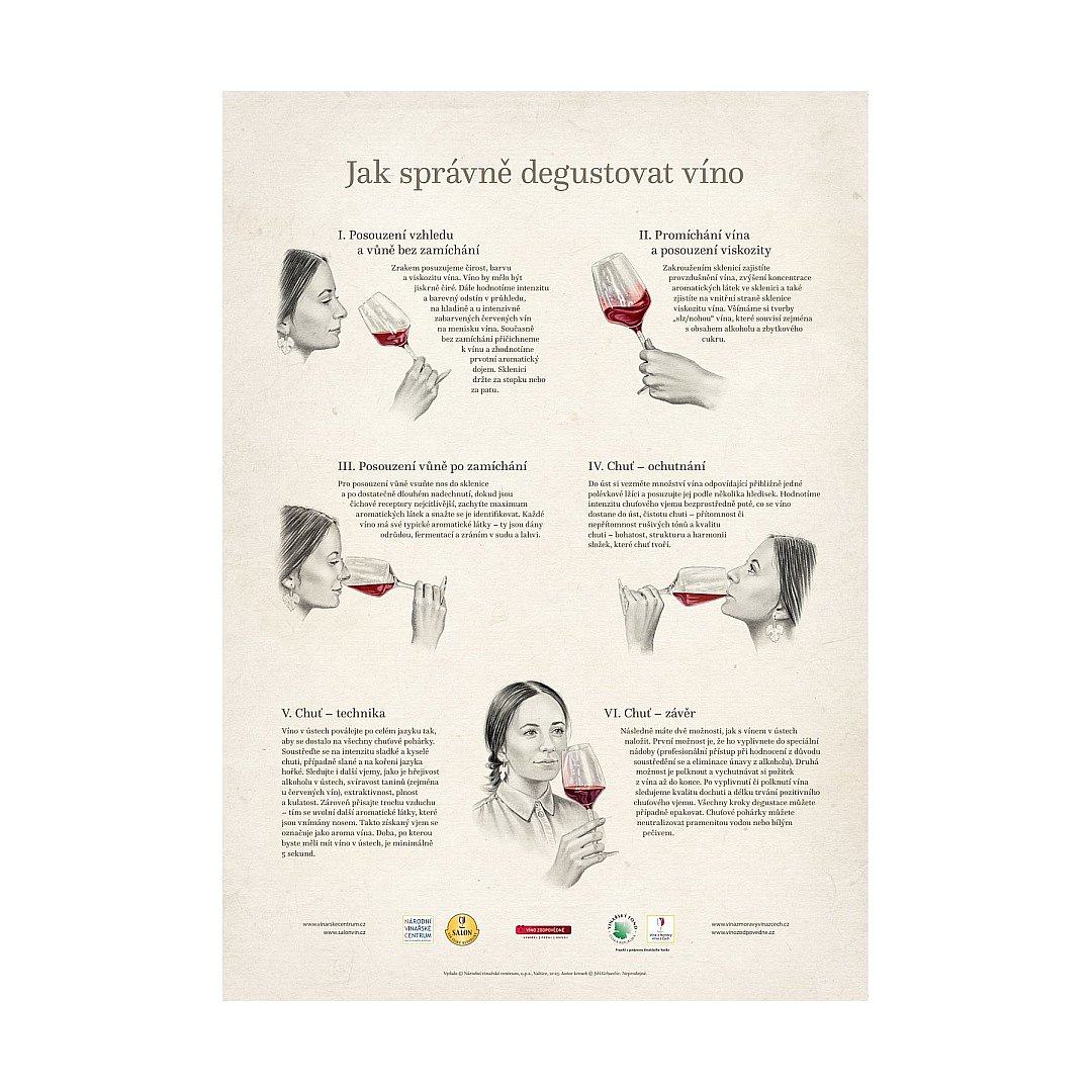 Plakát formátu A2 s popisem a vyobrazením správné techniky degustace vína. Po zarámování vhodné…
