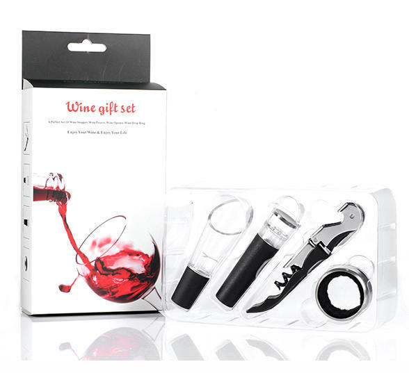 Dárkový set se 4 pomůckami pro milovníky vína. Set obsahuje otvírák, nalévátko, malou vakuovou…