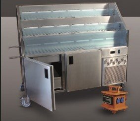 Zachováme 2 ze 3 prezentačních stolů z minulých let (foto viz níže). Místo třetího stolu vybavíme stánek chladícími zařízeními (typ-viz níže, design upravíme) pro prezentaci v rámci Free Tasting Zone (FTZ).