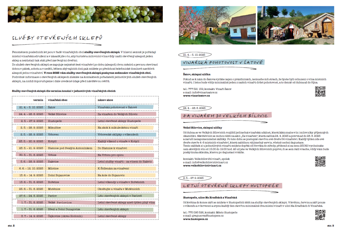Po vzoru loňského vydání zůstává rozměr a materiál kalendáře stejný. U služeb otevřených sklepů najdete QR kódy pro rychlý přesun na weby organizátorů. Nově na posledních stránkách kalendáře najdete seznam certifikovaných zařízení, aby se akce, a to nejlepší z vinařské turistiky setkalo v jedné publikaci.