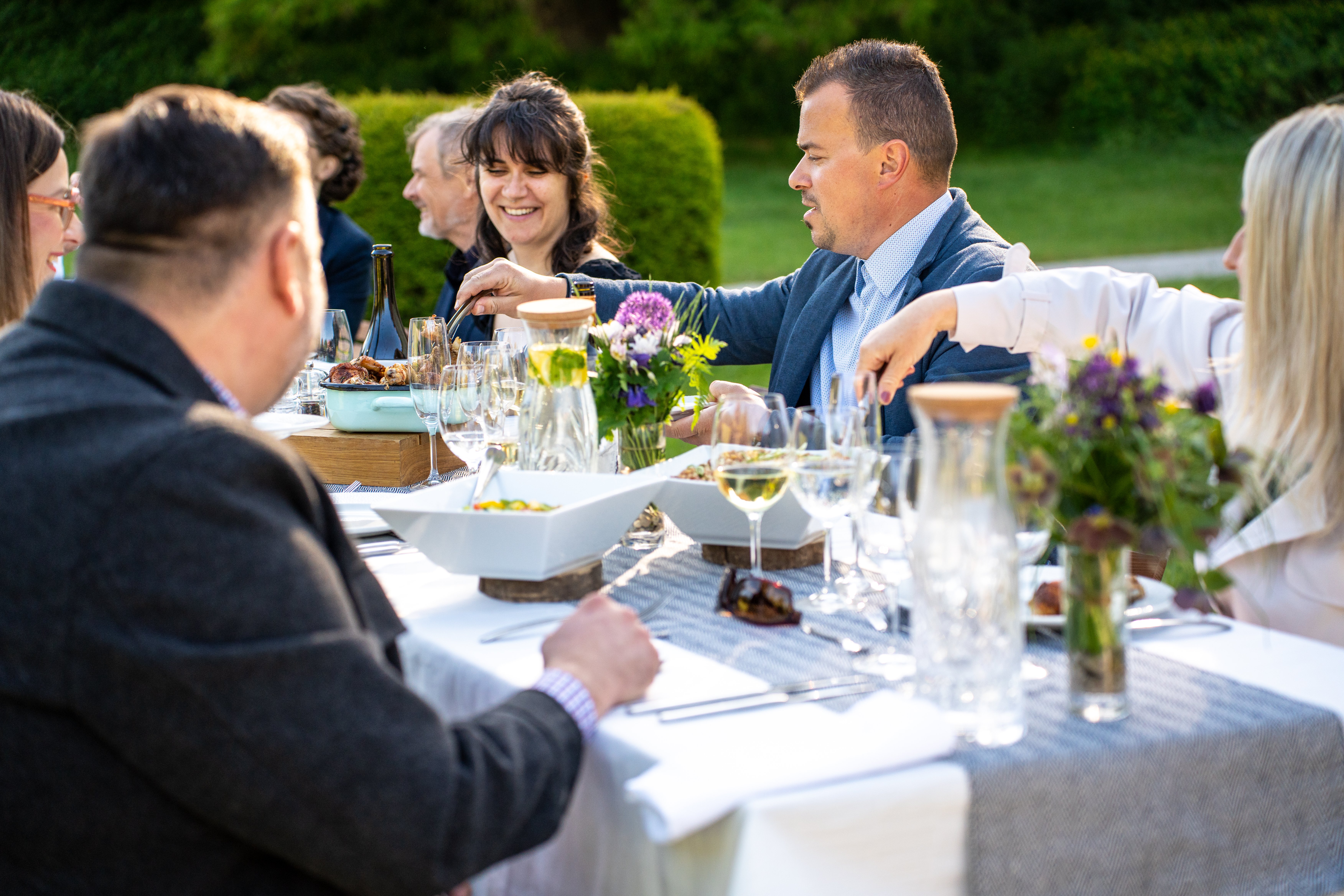 - Prostřený stůl v zahradě Zámeckého hotelu Anton Florian, pod nejmohutnějším jerlínem ve střední Evropě