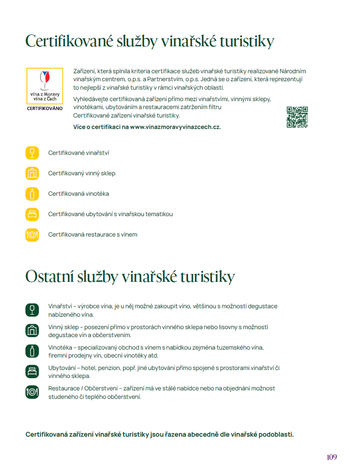- kompletní seznam certifikovaných zařízení vinařské turistiky.