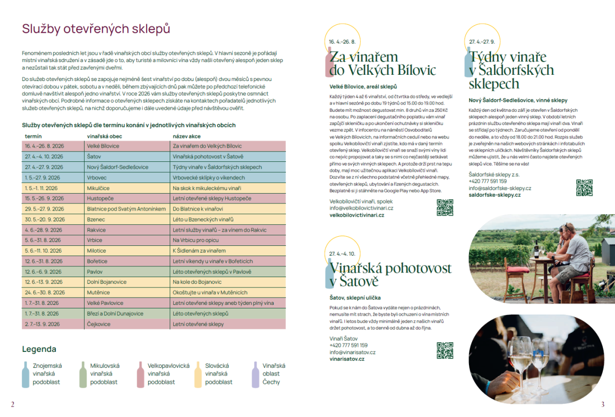 Milovníci vína, vinařské turistiky i pořadatelé akcí mohou začít plánovat další sezonu. Kalendář vinařských akcí 2026 je připraven již na začátku roku a oproti předchozím letům přichází v tištěné podobě výrazně dříve. Tradičně přináší přehled nejvýznamnějších vinařských akcí napříč celou Českou republikou – od vinobraní, služeb otevřených sklepů a slavností vína až po výstavy vín, degustace a tematické vinařské události. Slouží jako praktický nástroj pro veřejnost, turisty i profesionály z oblasti vinařství a cestovního ruchu.