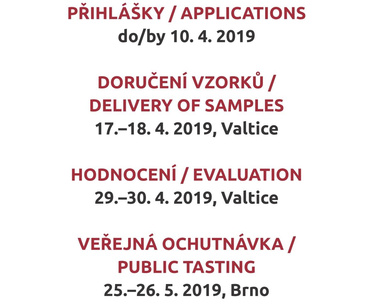 Vína budou odbornými mezinárodními komisemi ohodnocena ve Valticích 29.-30. 4. 2019. Ta nejlepší vína ze soutěže bude možné ochutnat na brněnském výstavišti 25.-26. 5. 2019. Více na webu soutěže www.grand-prix-vinex.cz.