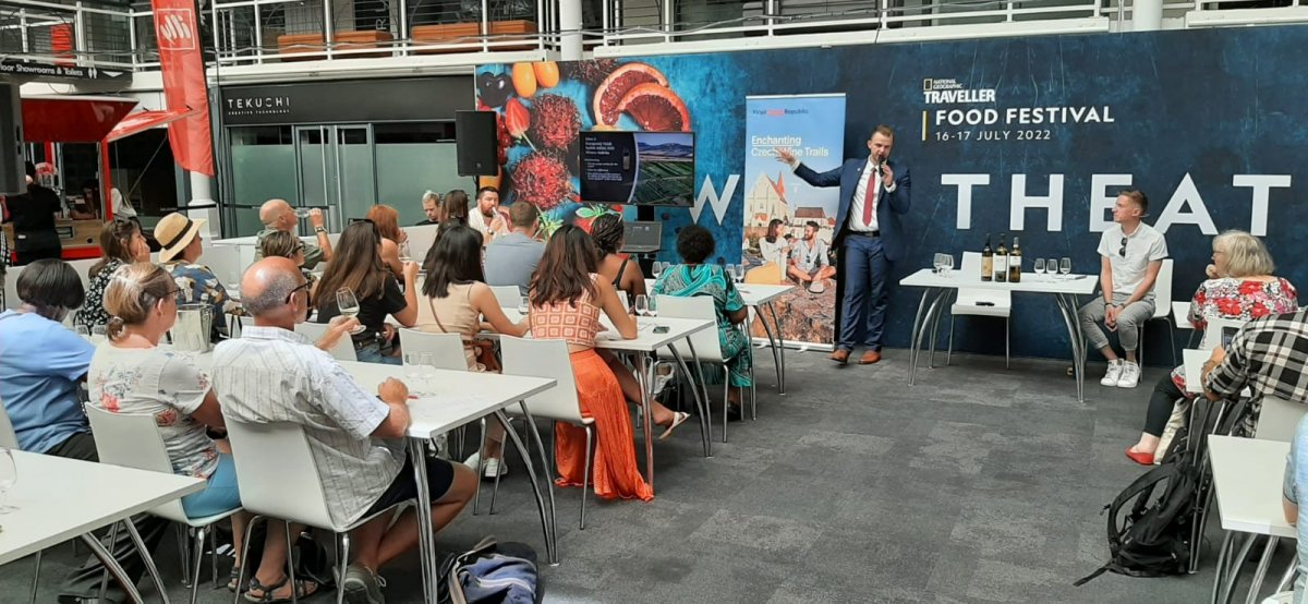 Kromě průběžných degustací na stánku jsme vína ukázali i při komentovaném vstupu v tzv. Wine Theatre, ve spolupráci se sommelierem z londýnské michelinské restaurace Hide, původem z Moravy - Martinem Klevetou.