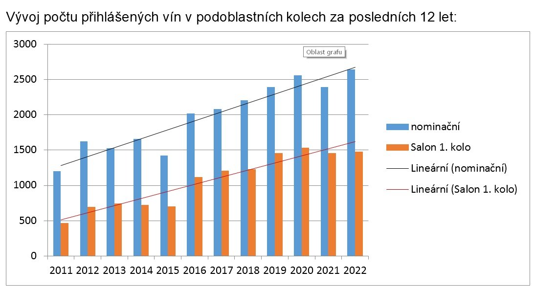 Na základě nominací z podoblastí se do 1. kola Salonu vín přihlásilo 1481 vín od 203 vinařů. Počet vinařství je nejvyšší v historii a je velmi potěšitelné, že do Salonu vín ČR se přihlašují i nová střední i menší vinařství.
