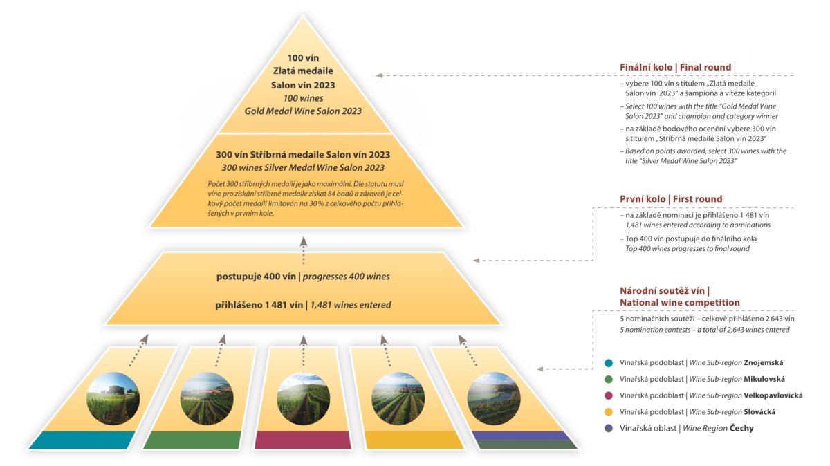 Hodnocení probíhá v systému Národní soutěže vín, tj. začalo již nominačními koly v jednotlivých vinařských podoblastech (na Moravě znojemská, mikulovská, velkopavlovická a slovácká a dále společná pro vinařskou oblast Čechy). Celkově se podoblastních kol zúčastnilo 2643 vzorků vín, což je rekordní počet a svědčí o velkém zájmu vinařů o tuto soutěž.
