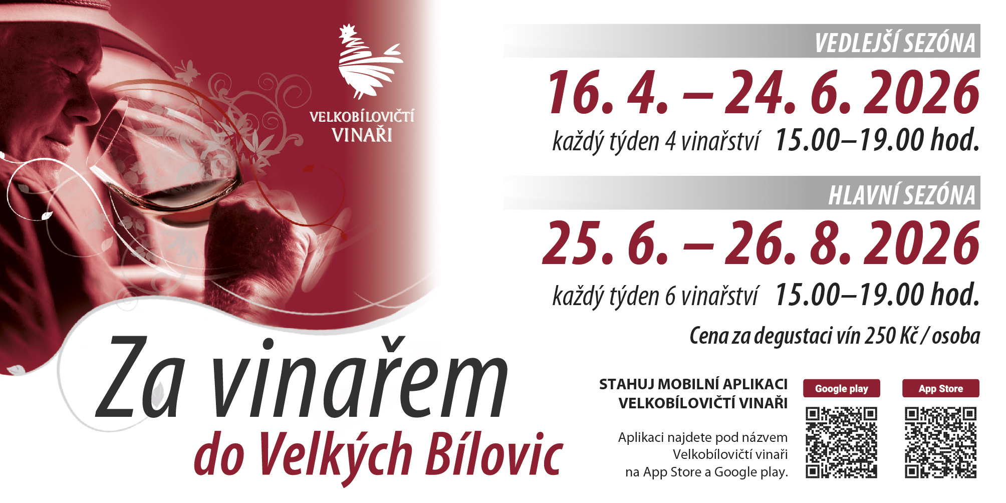 Velkobílovičtí vinaři se snaží svými víny lidi co nejvíc propojovat a taky se s nimi co nejčastěji setkávat přímo ve svých vinných sklepech. A protože drží prst na tepu doby, mají moc užitečnou aplikaci Velkobílovičtí vinaři. Dozvíte se z ní všechno podstatné včetně přehledné mapy, otevřených sklepů, ubytování a řízených degustacích. Bezplatně si ji stáhněte na Google Play nebo App Store.