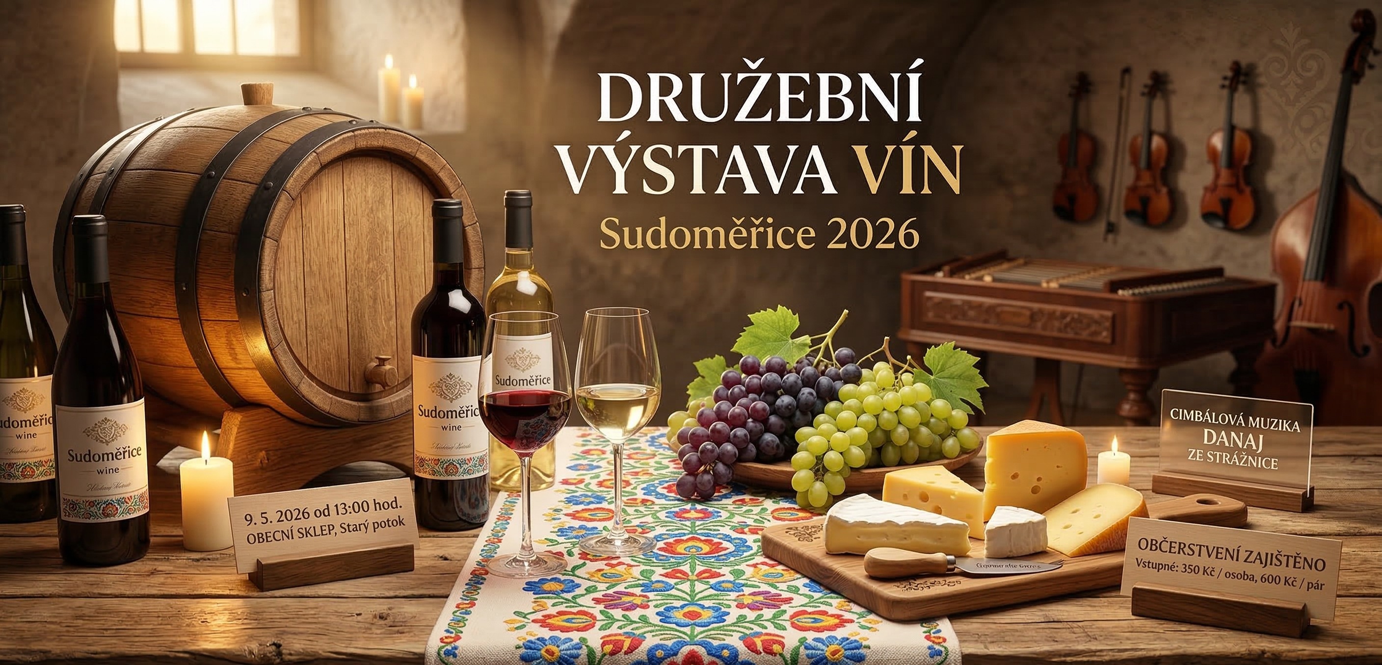 Srdečně vás zveme na tradiční Družební výstavu vín, která proběhne v autentických prostorách obecního sklepa v Sudoměřicích!