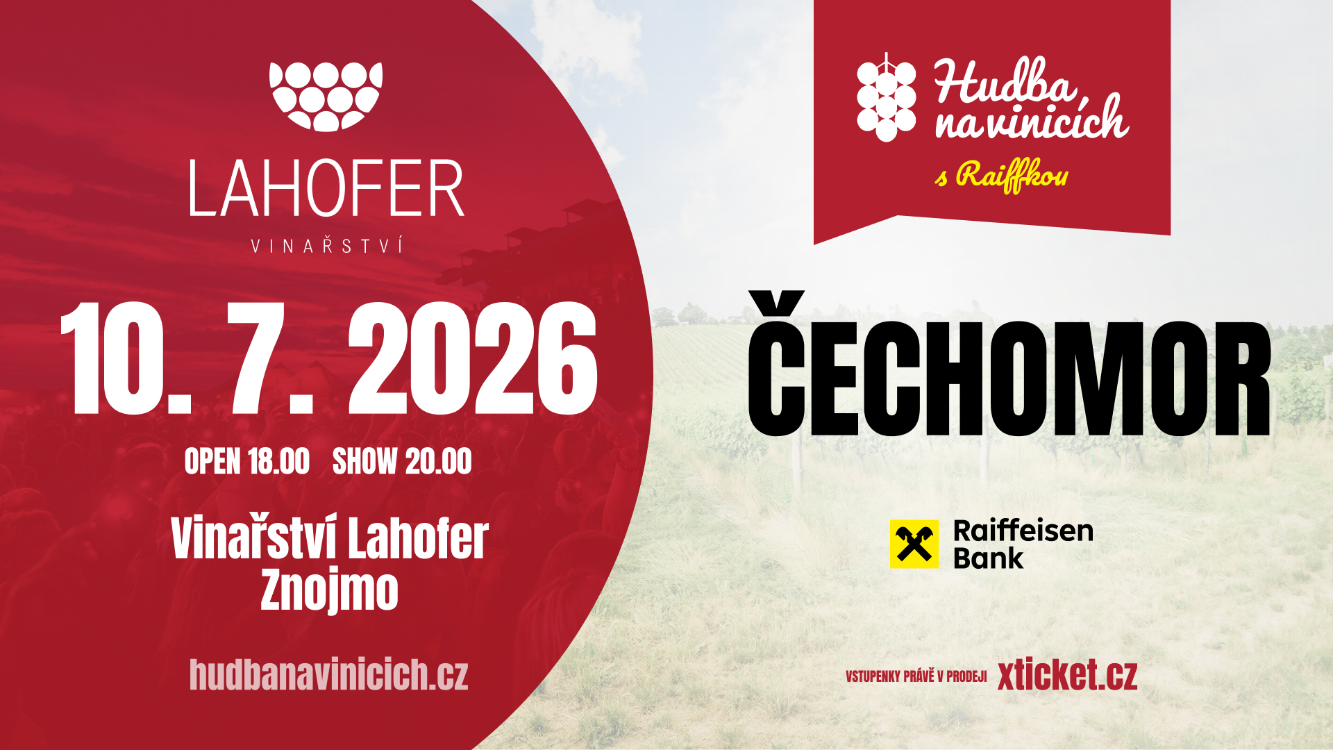 V Dobšicích u Znojma to s Hudbou na vinicích táhneme od samého počátku a zahájíme už 7. rok vzájemné spolupráce! V pátek 10. 7. 2026 vás srdečně zveme na koncert Čechomor. Vstupenky zakoupíte na webu www.xticket.cz