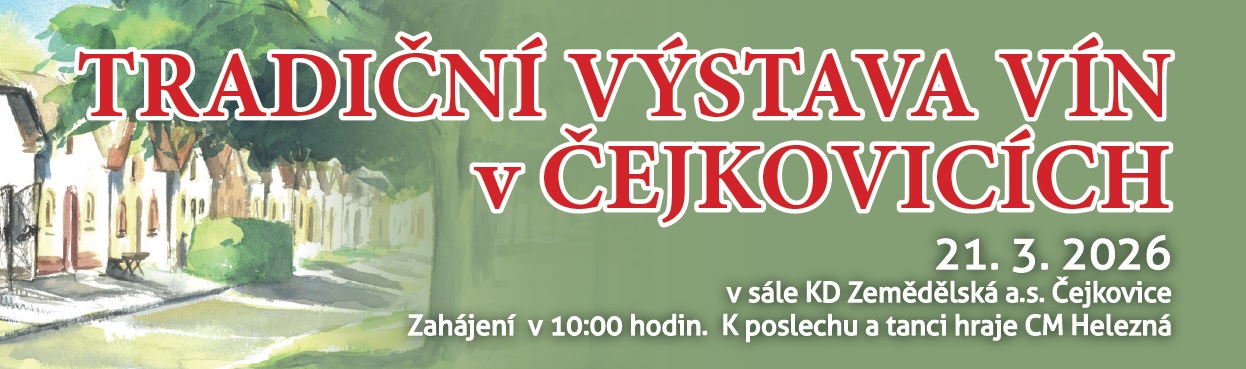 Hodnocení vín proběhne 8. 3. 2026 v jídelně ZŠ T.G.M. Čejkovice. Zahájení je v 9.00 hod. Zveme všechny zkušené i začínající hodnotitele vín.