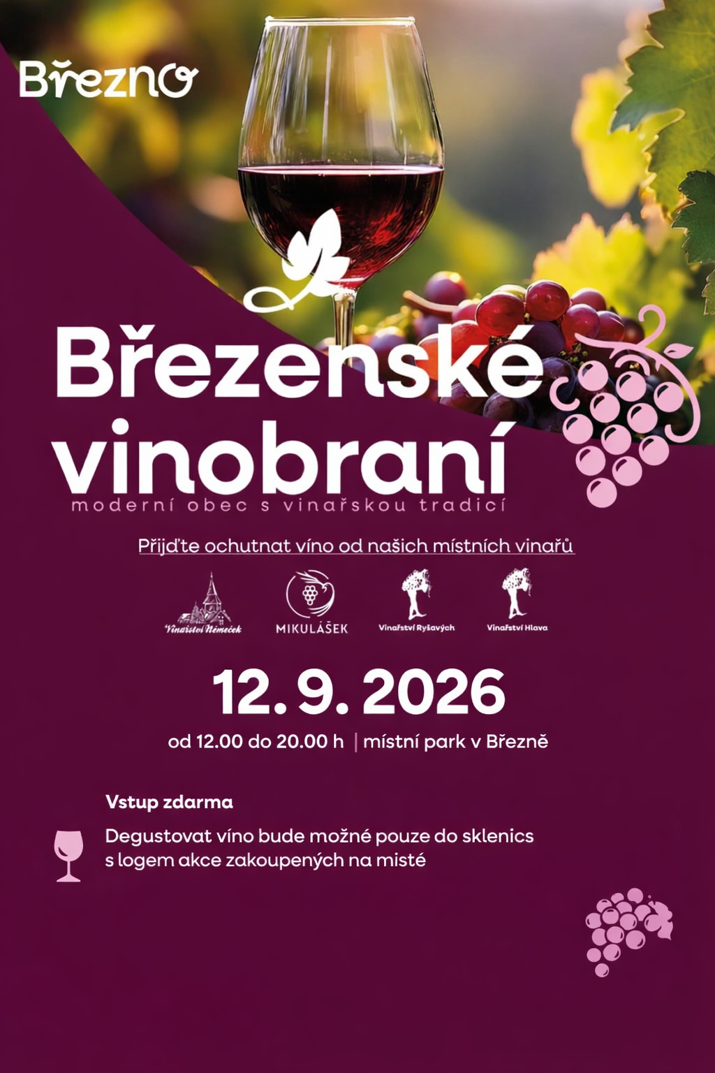 🆕 Letos dříve! Březenské vinobraní se přesouvá z tradičního říjnového termínu do září – přijďte přivítat babí léto se sklenkou v ruce!