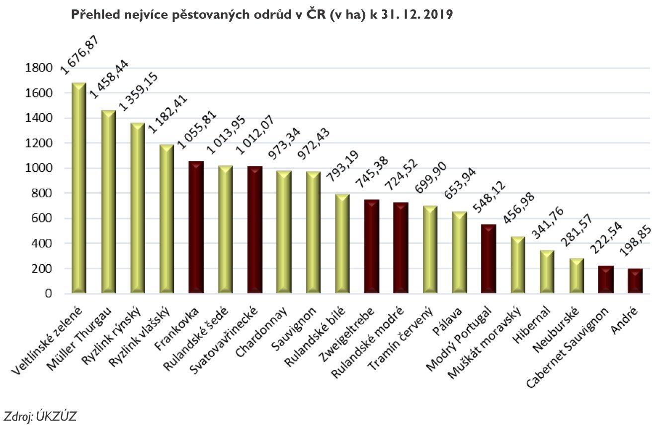 Republika Czeska charakteryzuje się dużą różnorodnością odmian winorośli. Na dzień 31 grudnia 2019 roku w Państwowym Rejestrze Odmian zarejestrowanych było 76 odmian winogron białych i niebieskich, 11 odmian stołowych oraz 8 odmian podkładek.